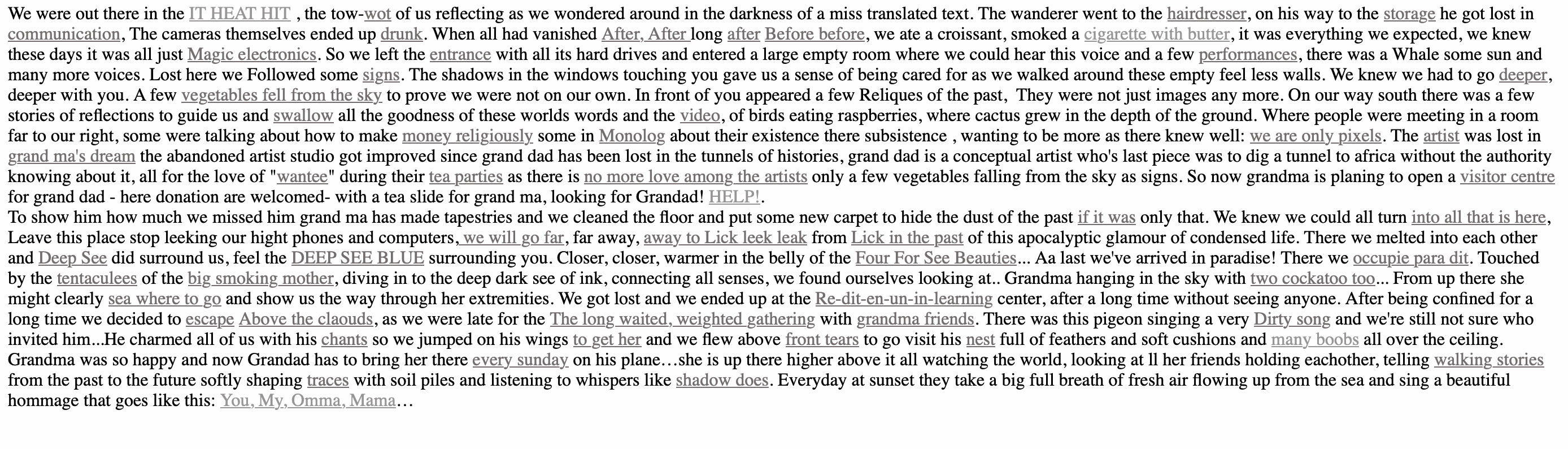 一连串无序混乱的文字跳出,像随机敲击键盘制造的乱码或梦呓时按下录音播放的「胡言乱语」,无论你尝试如何阅读,都难以找出其中的理性线索和叙事逻辑,让人不禁怀疑:是否网络出了问题?