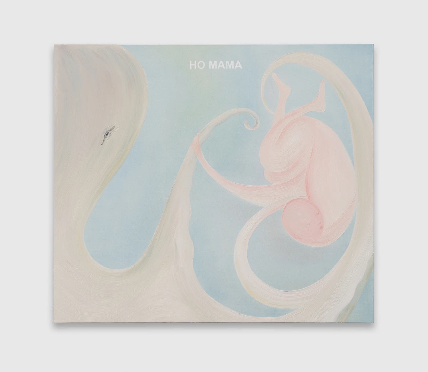 章鱼的身体细腻柔软,它的触手分泌粘液,经由触手感知,也由感知思考,《章鱼的身体》就借用这种机制,以视觉所及唤起身体的触觉回忆。本作全系列都使用大面积的蓝粉配色,铺陈着汹涌的温暖,章鱼或轻柔地抚摸婴儿,如同回到子宫的黏腻亲密,或深切拥抱着人类肉色的身躯,不断消弭着生物界限,彼此靠近后融合,让人不禁想起生命进化的起源,想起一切尚未成型的最初混沌。